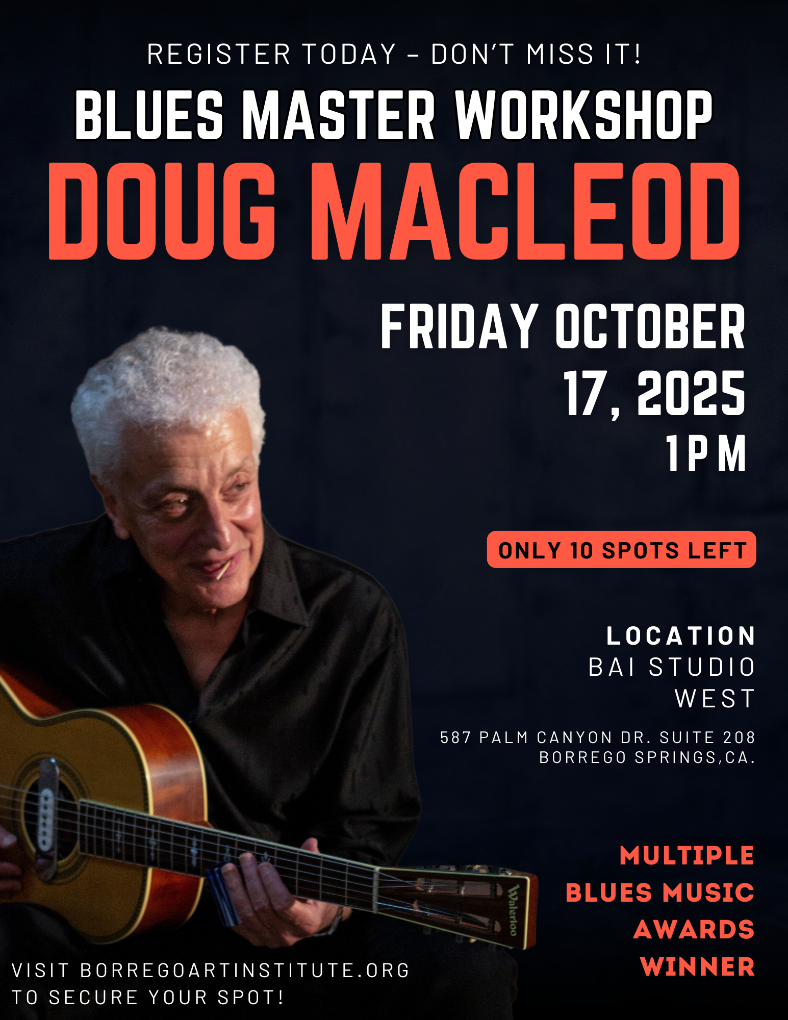 Where: Studio West, 587 Palm Canyon Dr. #208, Borrego Springs, CA 92004